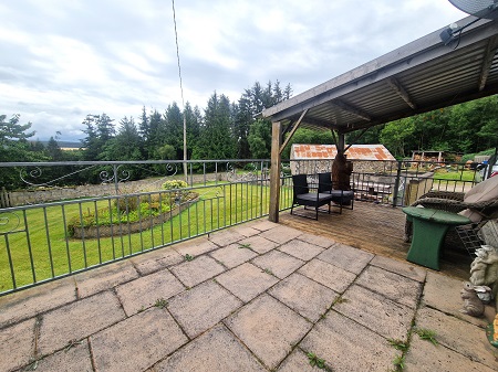 Shared gravel driveway with own parking area, suitable for up to four vehicles; large insulated single garage – manual sliding front doors to access; side external door; power & lighting; work bench and shelving included. Log store/car port attached to the left-hand side. 2 x Stone built external stores with a recently replaced roof; power and lighting within the first; outside tap. Enclosed front garden consisting of a large area laid to lawn; feature flower bed in the centre; wooden picnic bench sat upon a solid cement slab; elevated decked seating area, with fabulous views over the countryside surrounding; dog kennel – included; paved pathway leading from the front to rear; a second outdoor tap, located on the drive; outdoor lighting; area laid to lawn at the rear; large wooden garden shed, upon a cement base; rotary airer; area for bins;