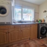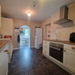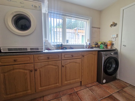 Located off the main hallway, to the rear of property; selection of base units, fitted with laminate work surfaces; space for a washing machine and tumble dryer; 2 x shelved storage cupboards; wall mounted coat hooks; window to the rear aspect fitted with vertical blinds; vinyl flooring.