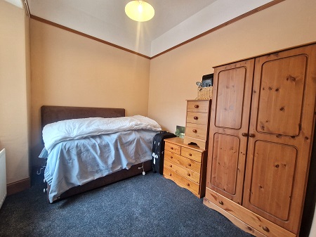 Single bedroom; space for additional furniture; window to the rear aspect fitted with vertical blinds; carpeted flooring.