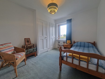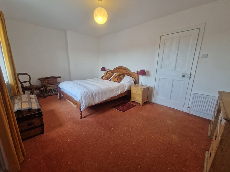 Double bedroom; space for furniture; window to the rear aspect; carpeted flooring; built-in wardrobe; built-in shelved cupboard.