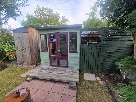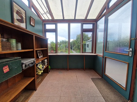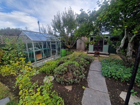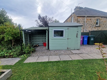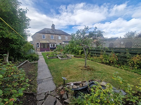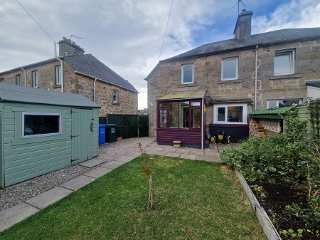 Enclosed front garden; paved pathway; selection of plants and shrubs throughout, surrounded in gravel.  Well-maintained fully enclosed rear garden; paved pathways; double gates with the option of off-street parking to the rear of property; wooden garden shed with a log store attached; area laid to lawn; external tap; raised flower beds; clothes line; greenhouse; wooden summer house with a potting shed adjacent; selection of mature fruit trees, shrubs & flowers; small pond; smaller wooden shed. Shared driveway.