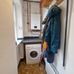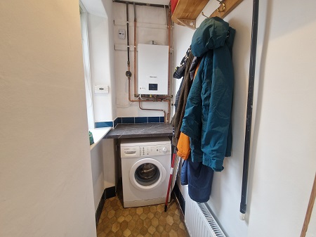Located off the kitchen with a window to the side aspect; vinyl flooring; space for a washing machine which is included; wall mounted glow worm, gas boiler.