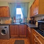 L-shaped kitchen; selection of wall-mounted and base units; sink with mixer tap set within the laminate work surface; space for an electric cooker; washing machine and fridge freezer; brand new boiler, discreetly placed within a cupboard – storage beneath; window to the front aspect, fitted with vertical blinds; tiled around work surface; vinyl flooring.
