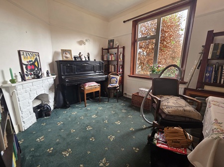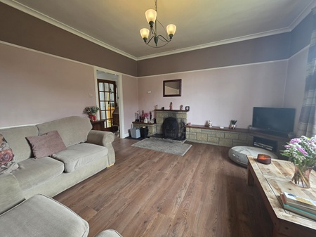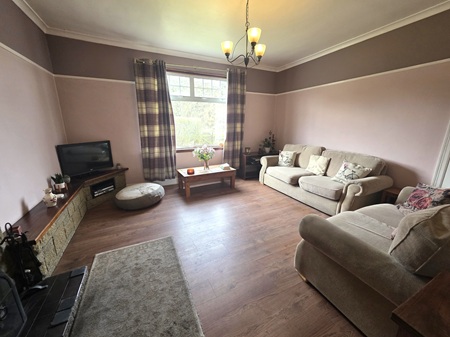 Well-proportioned lounge with a lovely, homely feel; space for a range of furniture; laminate flooring; open coal fire with tile & stone surround; large window to the front aspect; drop light fitting