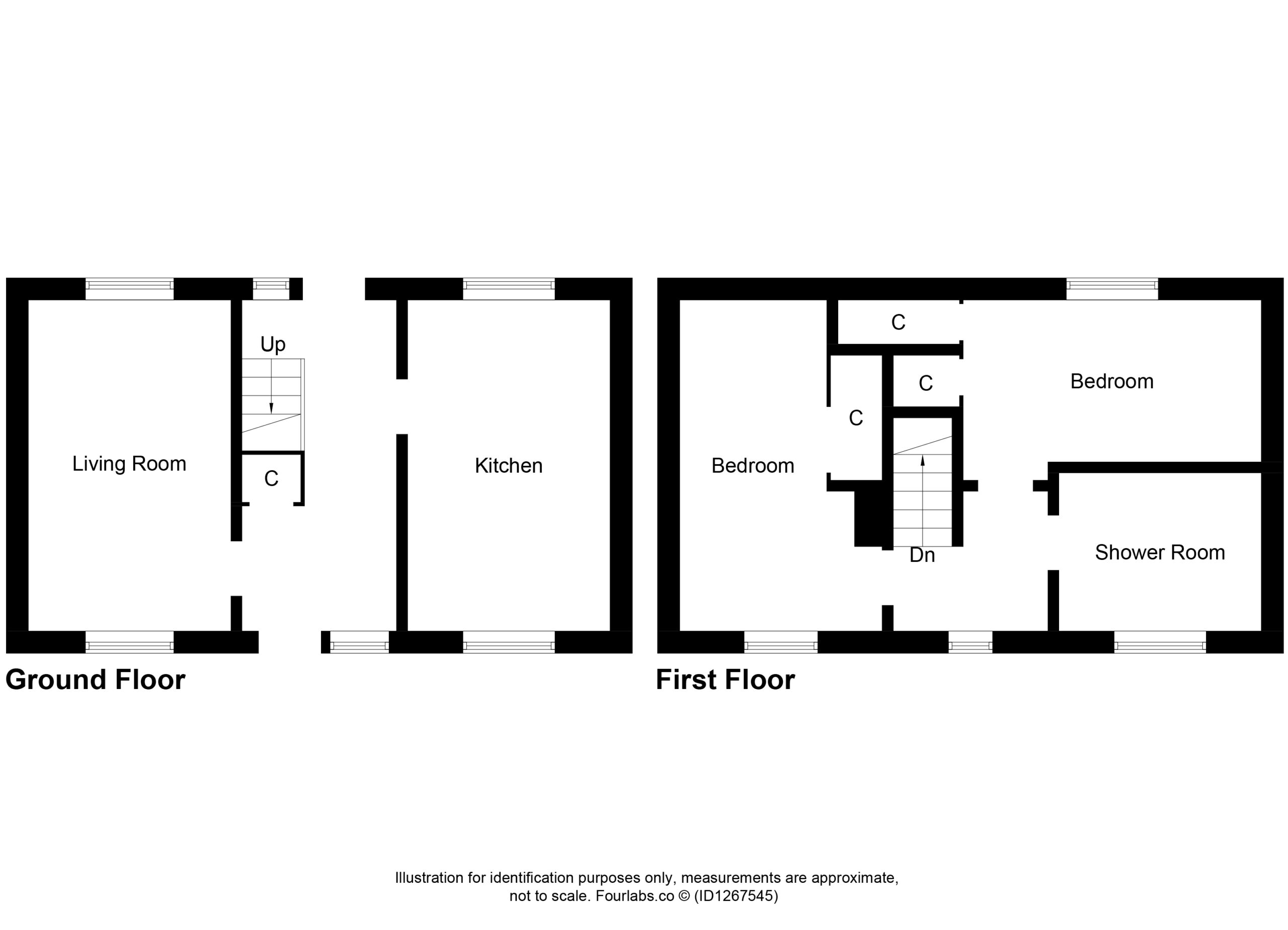 The first floor comprises two generously proportioned bedrooms, both offering excellent storage potential, along with a contemporary shower room finished to a modern standard.