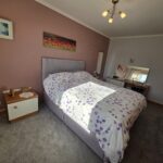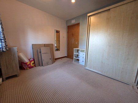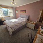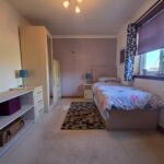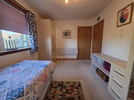 Double bedroom with aspect to accommodate free-standing furniture; carpeted flooring; fitted double wardrobe with sliding doors, selection of shelving & clothes rail; window to the rear aspect fitted with a roller blind.