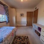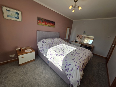 Double bedroom; space for furniture; built-in double wardrobe with shelving & clothes rail; carpeted flooring; window to the rear aspect fitted with a roller blind.