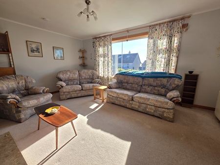 Paved driveway, extending up to the garage – space for multiple vehicles. Single garage with a manual door, power & lighting within; rear external door & window; external tap. Mature front garden, predominantly laid to lawn; selection of mature hedges, trees, plants & shrubs throughout; ramped access to the front of the property; paved pathways leading from the front, round the side and to the rear; rear garden offers fabulous views over the fields surrounding, towards Hopeman. Area laid to lawn; paved patio area; wooden garden shed; rotary airier; greenhouse; selection of garden furniture will remain; selection of plants, trees & shrubs throughout.