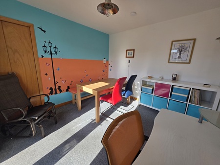 Perfectly suitable for either a dining room or double bedroom; space for furniture; double patio doors to the front aspect; wall mounted lighting; built-in shelved cupboard with bi-fold doors.