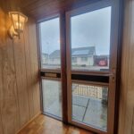 Aluminum glazed door opening into the entrance vestibule; wall mounted lighting; internal partially glazed wooden door leading into the lower hallway; large storage cupboard where the electricity meter, pv controls, gas meter & consumer unit are located; door to lounge; vertical radiator; carpeted stairs to the first floor.
