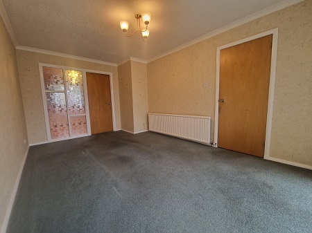 Space for a range of furniture; large window to the front aspect fitted with vertical blinds; doors to the hallway & kitchen; carpeted flooring.