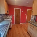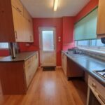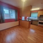 Selection of wall mounted & base units; laminate worksurfaces; stainless-steel sink with mixer tap, set within; integrated gas hob, oven & extractor; tiled around worksurfaces; space for a selection of appliances; large shelved storage cupboard, gas boiler housed within; space for a dining table & chairs; laminate flooring; dual aspect windows to the rear & side aspects, fitted with blinds.