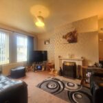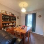 A delightfully bright and spacious room; carpeted; dual aspect windows to the front and rear, fitted with vertical blinds; space for a range of furniture including a dining table & chairs; open coal fire set within a tiled surround; door to the lower hallway and kitchen.