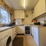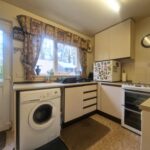 Selection of wall mounted and base units with laminate worksurfaces; stainless steel sink set within; tiled around worksurfaces; space for a selection of appliances; extractor; window to the rear aspect; vinyl flooring; rear external partially glazed, upvc door.