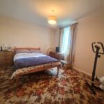 King-size bedroom; carpeted flooring; space for furniture; window to the rear aspect; built-in double wardrobe with shelving & clothes rail; built-in storage cupboard.