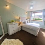 This beautifully presented ground floor, king-size bedroom is bathed in natural light throughout the day thanks to its desirable south-facing positioning; generously proportioned and comfortably accommodates a king-size bed with plenty of room for additional furniture; large window to the front aspect, enhancing the sense of space while offering a warm, inviting atmosphere; built-in wardrobe with shelving & hanging rail; wall mounted lighting; carpeted flooring.