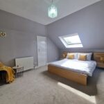 An expansive and well-designed first floor, king-size bedroom that seamlessly combines comfort and elegance; space for a fantastic range of furniture; built-in storage cupboard which houses the water tank; 2 x access points to the attic space; carpeted flooring; south facing velux window fitted with integrated blackout blind.