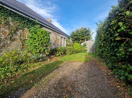 Sizeable wrap-around garden grounds; selection of mature trees, plants and flowers throughout; areas of lawn to the front and rear; driveway to the side aspect, leading up to the garage; wood garage in need of some attention; paved pathway around the perimeter of the property.