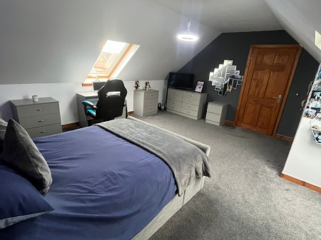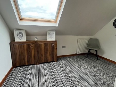 Fabulous upper landing, with a large Velux window, providing an abundance of natural light; carpeted flooring; space for furniture – a lovely office space, if desired; doors to Bedrooms 3 & 4 and shower room.