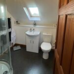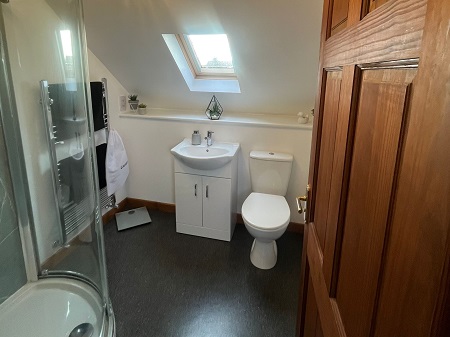First floor shower room; corner shower enclosure with a mains’ shower; WC; wash hand basin set within a storage unit; vinyl flooring; Velux window to the front aspect; heated towel rail.