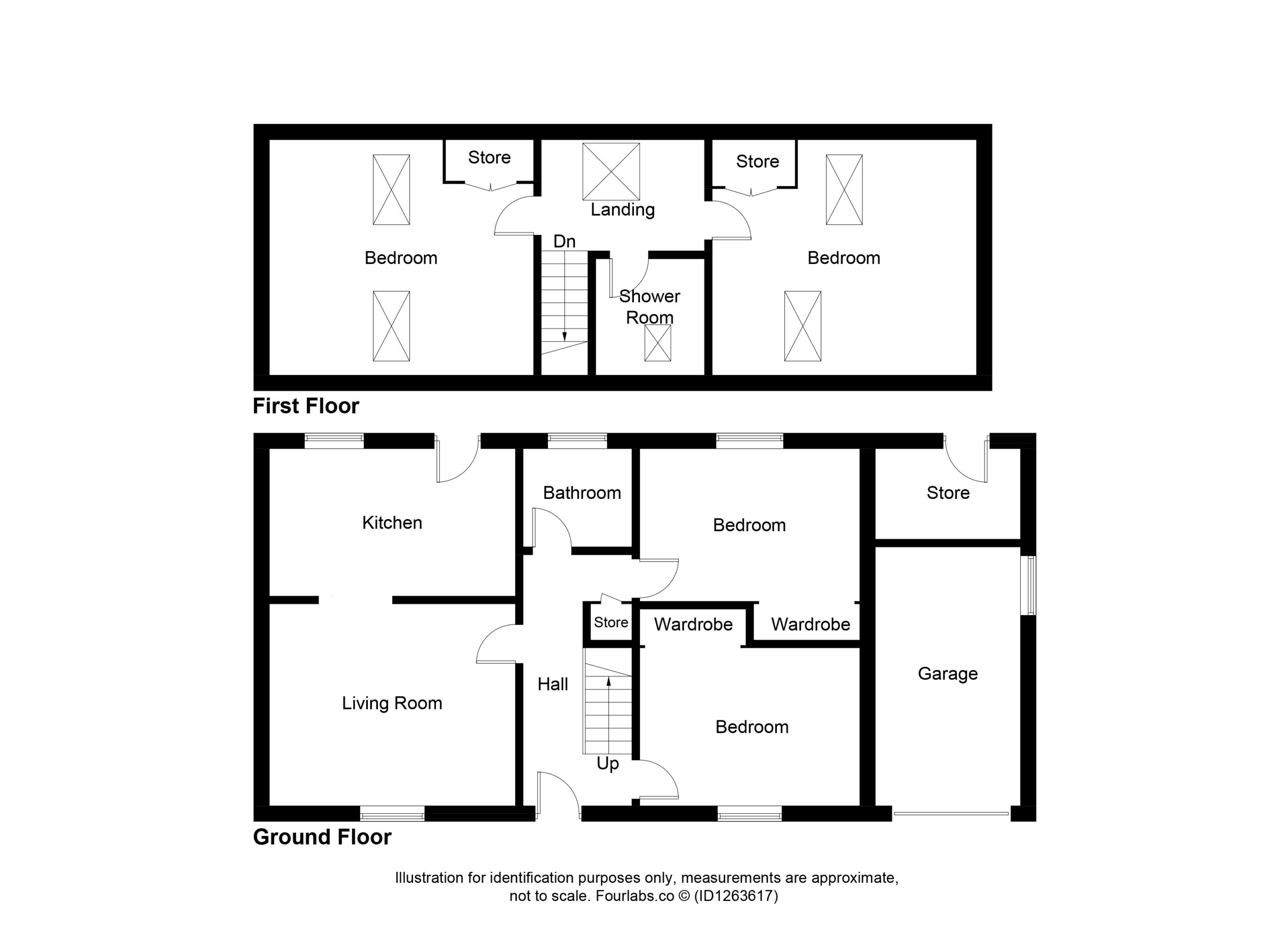 uPVC partially-glazed front door, opening into a bright and very welcoming hallway; doors to lounge, bathroom, and Bedrooms 1 & 2; large understairs’ storage cupboard; electricity meter located with a smaller understairs’ cupboard; carpeted stairs to the first floor.