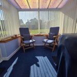 South facing sunroom, located off the kitchen; carpeted flooring; windows to three aspects fitted with vertical blinds; plumbing within for the washing machine – included; rear external upvc, partially glazed door fitted with a roller blind.