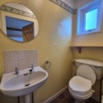 Located, conveniently off the utility room; vinyl flooring; WC; wall mounted wash hand basin; fixtures & fittings; wall mounted mirror & shelf; translucent window to the rear aspect.