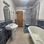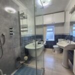 Fully tiled bathroom; large free-standing bath; spacious shower enclosure with a mains’ shower; WC; pedestal wash hand basin; fixtures & fittings; wall mounted storage cupboards; heated towel rail; wall mounted mirror & shaver light; translucent window to the rear aspect; vinyl flooring.