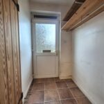 Laminate worksurfaces with space for a range of under-counter appliances; gas boiler; selection of wall mounted shelves; ceiling mounted pully; wall mounted safe; cloak rail & area ideal for shoe storage; vinyl flooring; doors to guest WC & kitchen; rear external partially glazed, upvc door.