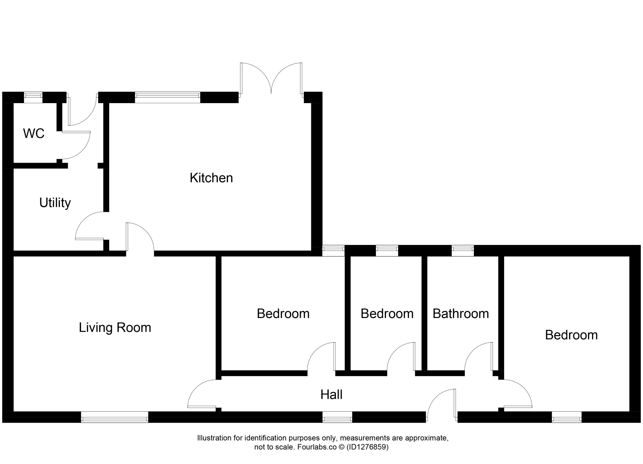 Partially glazed, uPVC door, opening into a bright entrance hallway: doors to lounge, all bedrooms and bathroom; laminate flooring; window to the front aspect; electric meter & consumer unit, stored within a purpose-built cupboard at ceiling height.