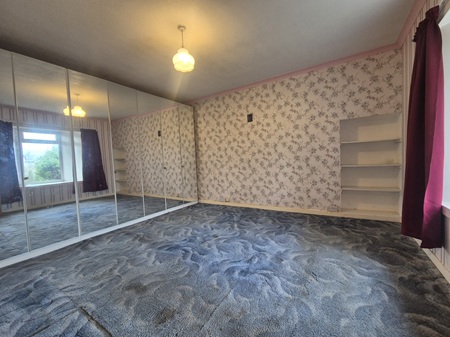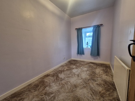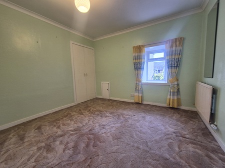 Double bedroom; space for furniture; built-in storage cupboard – water tank within; wall mounted mirror; carpeted flooring; window to the rear aspect.
