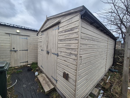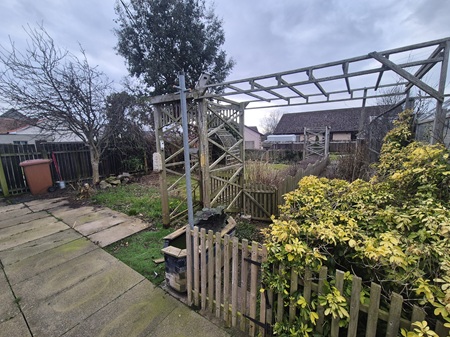 Once adored garden, in need of some reviving; fully enclosed front garden with a stone, wall boundary and gate; selection of plants & shrubs throughout; paved & gravel pathways. Double driveway to the rear aspect before accessing the double garage – 1 manual door and 1 electric door; garage is in fantastic condition with lighting and a great selection of sockets with. Wonderful enclosed rear garden with a selection of wooden garden sheds (4 in total), largest of these is 4.59m by 3.08m; greenhouse; selection of pergolas; paved patio area; fruit cage; allotment area; paved pathway; rotary airier; external tap & socket.