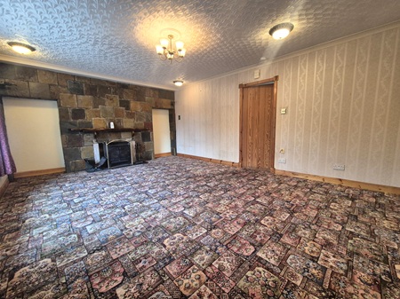 Well-proportioned lounge with space for a large range of furniture; large window to the front aspect; carpeted flooring; wood burner with a slate hearth and wooden sill; doors to entrance hallway & kitchen.